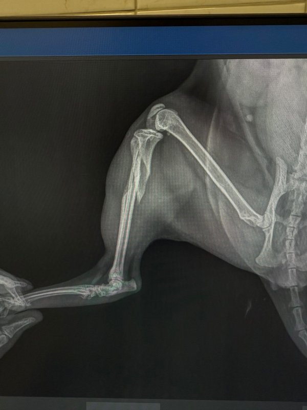 Нашему найдёнышу, который попал под машину, сделали сложнейшую операцию,а до этого, было уже сделано две операции в других клиниках и неудачно.